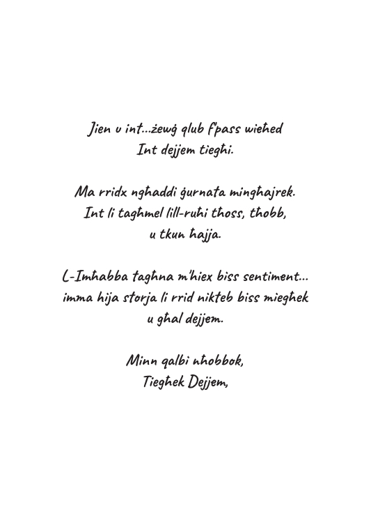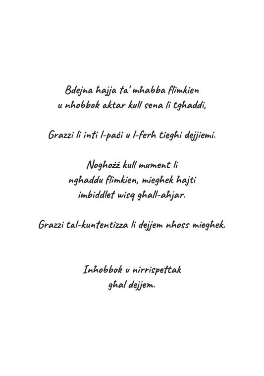Biex tara il-kitba ta ġewwa tal-kartolina, poġġi il-pointer tal-mouse fuq li stampa u b'hekk tara kif inkun gewwa tal-kartolina.